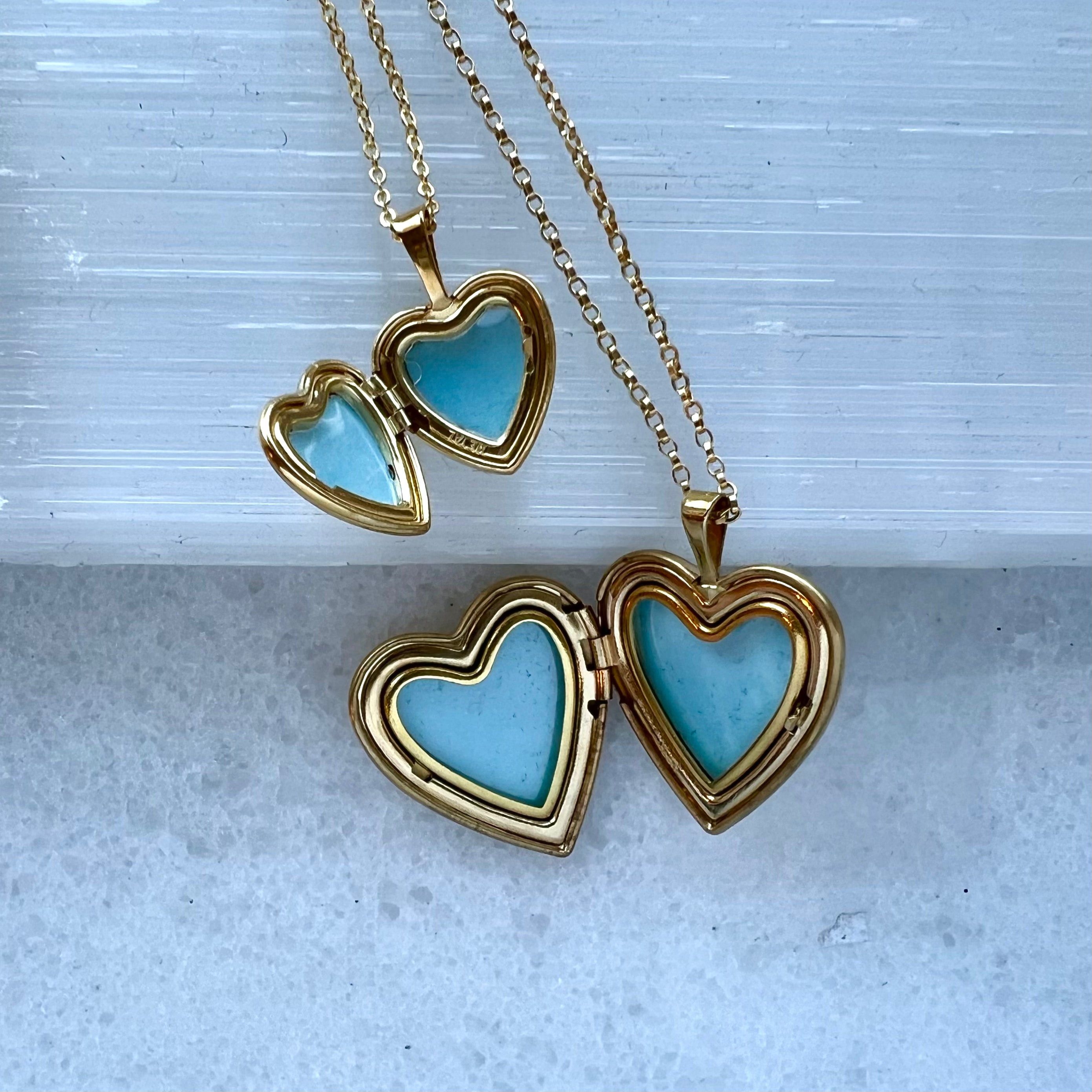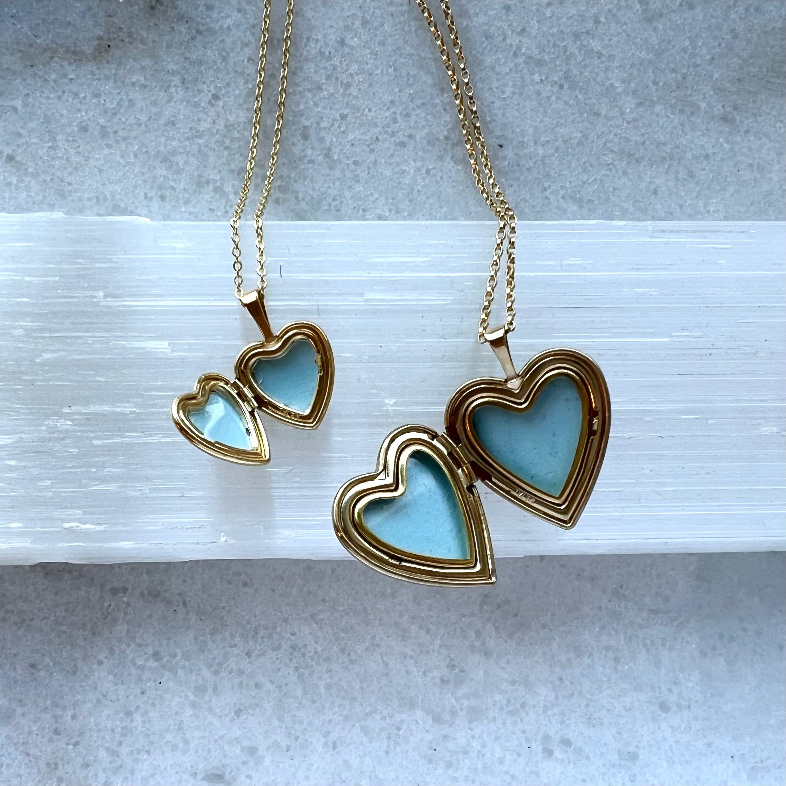The Mini Heart Locket Necklace is a petite keepsake to hold what you love close to your heart. Tuck in a favorite photo, a tiny note, or a cherished memento. Carry it close and keep your heart open.